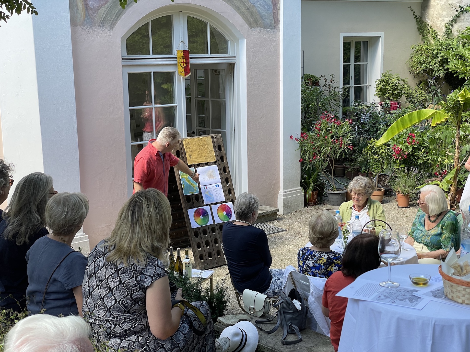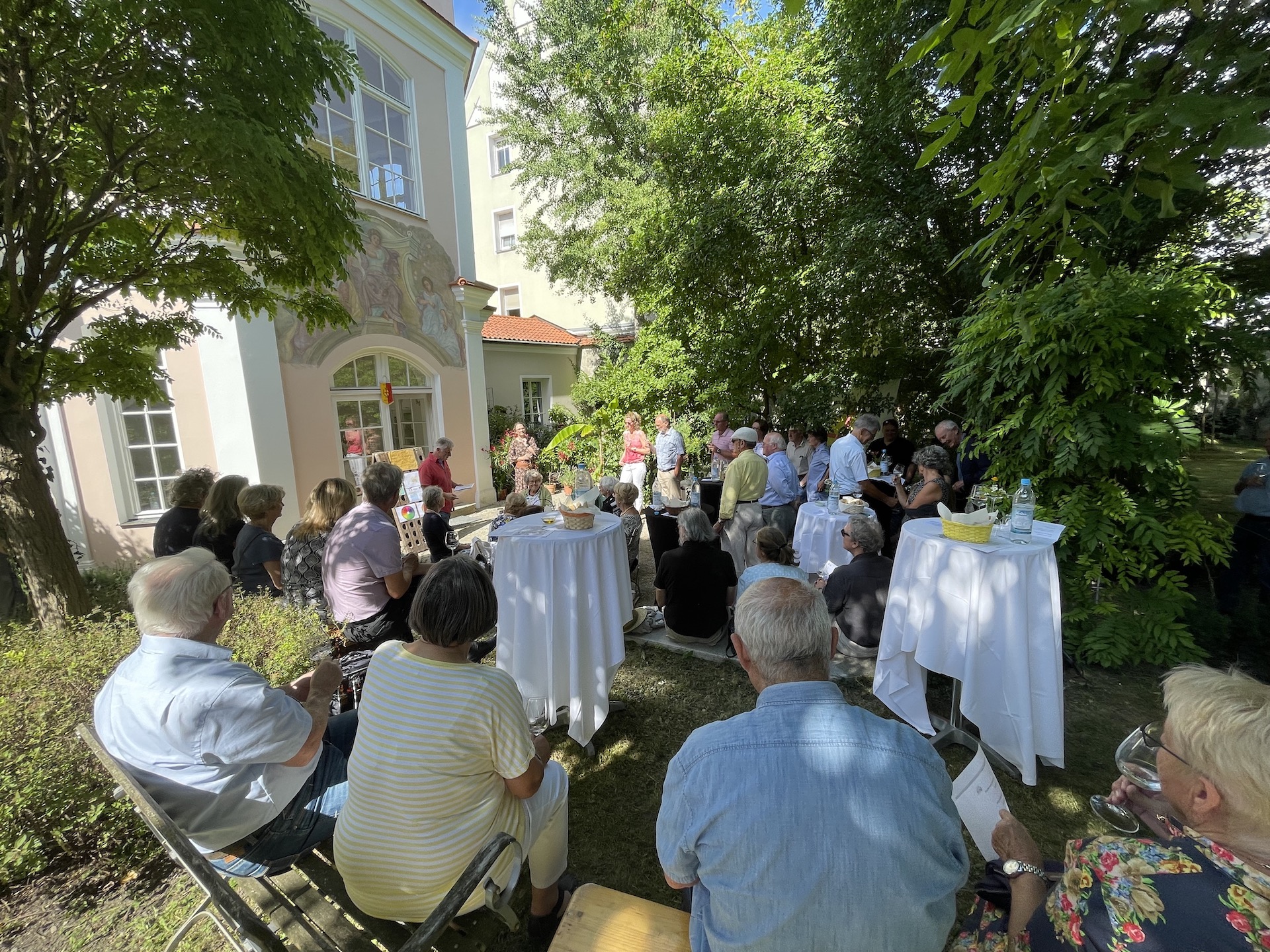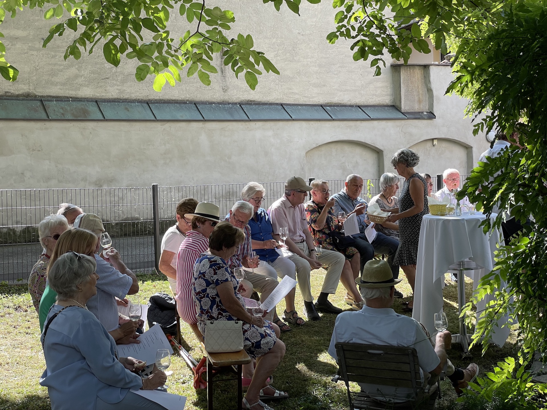 Zum zweiten mal lud der Partnerschaftsverein Landshut-Schio seine Mitglieder zur Weinprobe. Wie schon letztes Jahr begrüßte der Vorsitzende Elmar Weber seine Gäste im Sebastiani-Pavillon. Das Wetter war heiß und so boten die gekühlten Weißweine im Wechsel mit reichlich Mineralwasser etwas Abkühlung. Dazu wurden traditionell Weißbrot, Olivenöl und Käse gereicht. Herr Fischer entführte das Publikum diesmal in die Region Friaul-Julien in Venetien. Ein großes Dankeschön an alle für das zahlreiche Erscheinen!